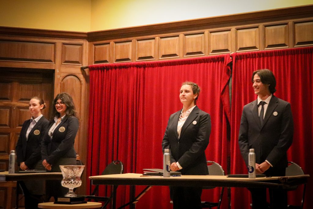 This year’s resolution addressed whether presidents and prime ministers should be granted immunity from criminal prosecution after leaving office. Representing Rollins College, Anna Haber and Jiya Manchanda argued in favor, while students from Hellenic American University opposed the resolution.