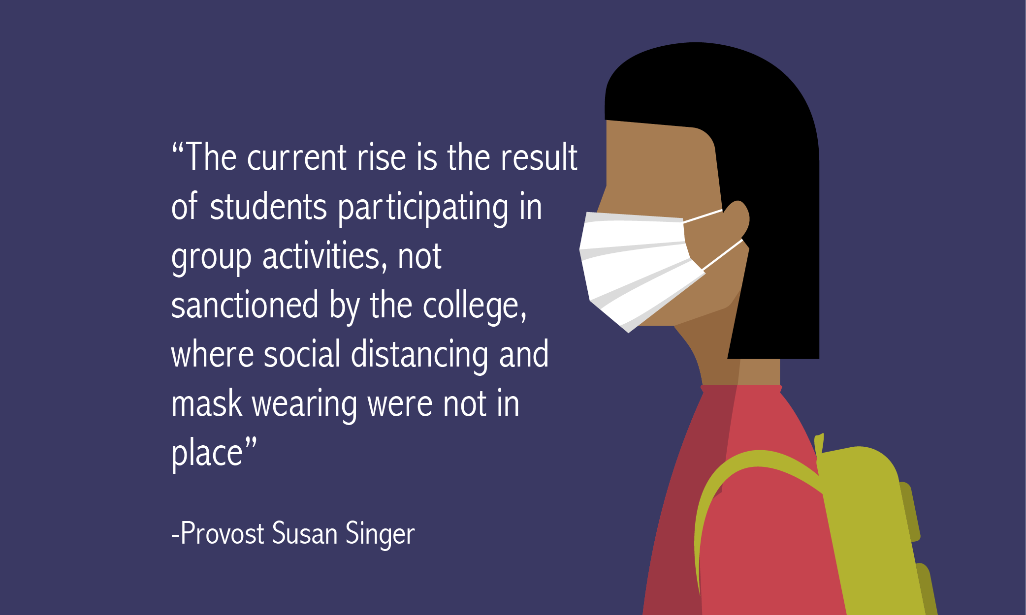 “The current rise is the result of students participating in group activities, not sanctioned by the college, where social distancing and mask wearing were not in place,” said Provost Susan Singer.